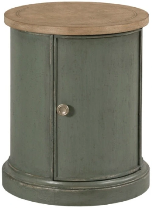 The American Drew® Chastain Woodfield Brown Round Accent Table with Green Base combines a unique green finish with quality craftsmanship for a distinctive look. Its round shape and sturdy construction provide both style and function, making it perfect for displaying decor or holding essentials while adding a pop of color to any room.Read More