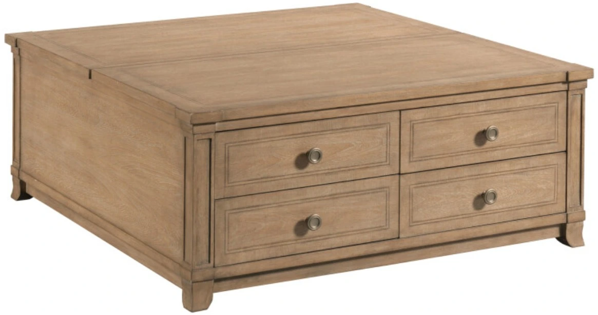 The American Drew® Chastain Woodfield Brown Square Coffee Table features a sturdy construction and a spacious surface for decor and everyday use. Its sleek design and quality materials add sophistication and practicality to any living room, offering both style and durability for everyday activities.Read More