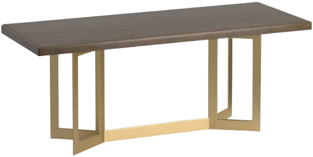 Crafted by heart based on your vision, the Astor's solid red leaf maple top is a thick 1" with rounded corners, natural beauty and a warm brushed brass trestle style base. The maple is lightly distressed and offered in finishes ranging from greys and whites to deep browns. Finish choices available in store.