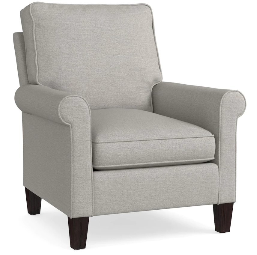 The Oswell accent chair gives your room a much-needed point of view. Rolled arm styling with box border back and seat cushions with sinuous wire construction for comfort and durability. Visit a store for even more design options, including designer fabric combinations, and nail head trim options.Read More