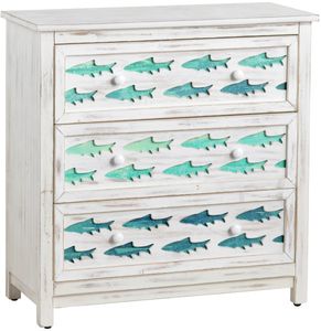 Swim your own way with this Crestview Collection 3-drawer White Wash Chest with Gradient Blue Swimming Fish. This perfectly-sized chest is meant to be seen and enjoyed for its energy, even when your bedroom or living space are quiet.Read More