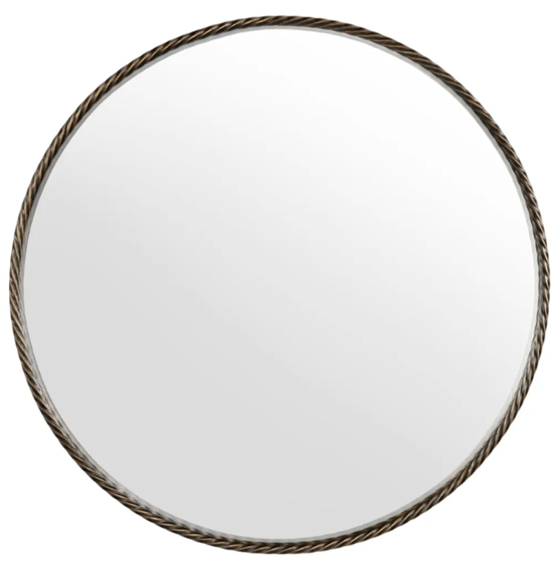 The Hughes 1 wall mirror by Crestview Collection (40" round) features a twist-style metal frame with graceful curves in a warm brown finish. Blending classic beauty and timeless charm, it’s perfect for entryways, mantels, or living spaces, adding elegance to both traditional and contemporary interiors.Read More
