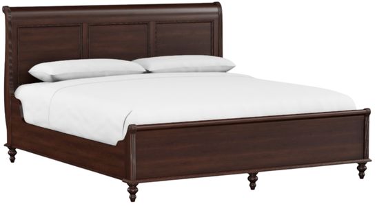 This king sleigh bed features sculptural sleigh headboard and a low-profile footboard in rich maple wood, with carved details and refined moulding. With fully customizable finishes and designer hardware, it delivers timeless elegance and grand proportions—creating a distinguished, tailored centerpiece designed for a luxurious bedroom setting.Read More