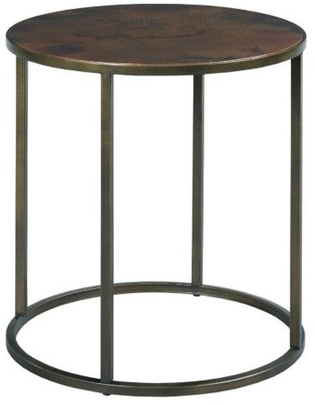 The Sanford living room group features hammered copper tops and metal bases, Round End Table.Read More
