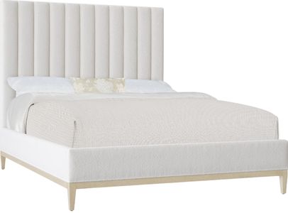 Transform your bedroom into a serene sanctuary with the Cascade King upholstered bed. The channeled fabric headboard, upholstered in soft wolf pearl fabric, combines with a sturdy wood base and tapered legs for a sophisticated, modern look.Read More