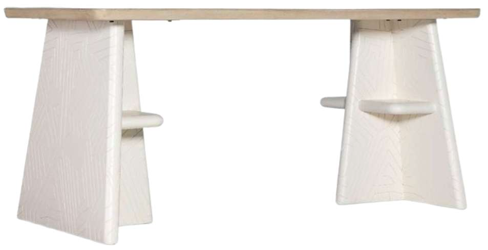 The Effie writing table from Commerce and Market brings together a clean, modern design with traditional craftsmanship. Its creamy white base features a geometric motif carved into the double pedestal design, while the contrasting light elm top adds a refined, two-tone finish.Read More