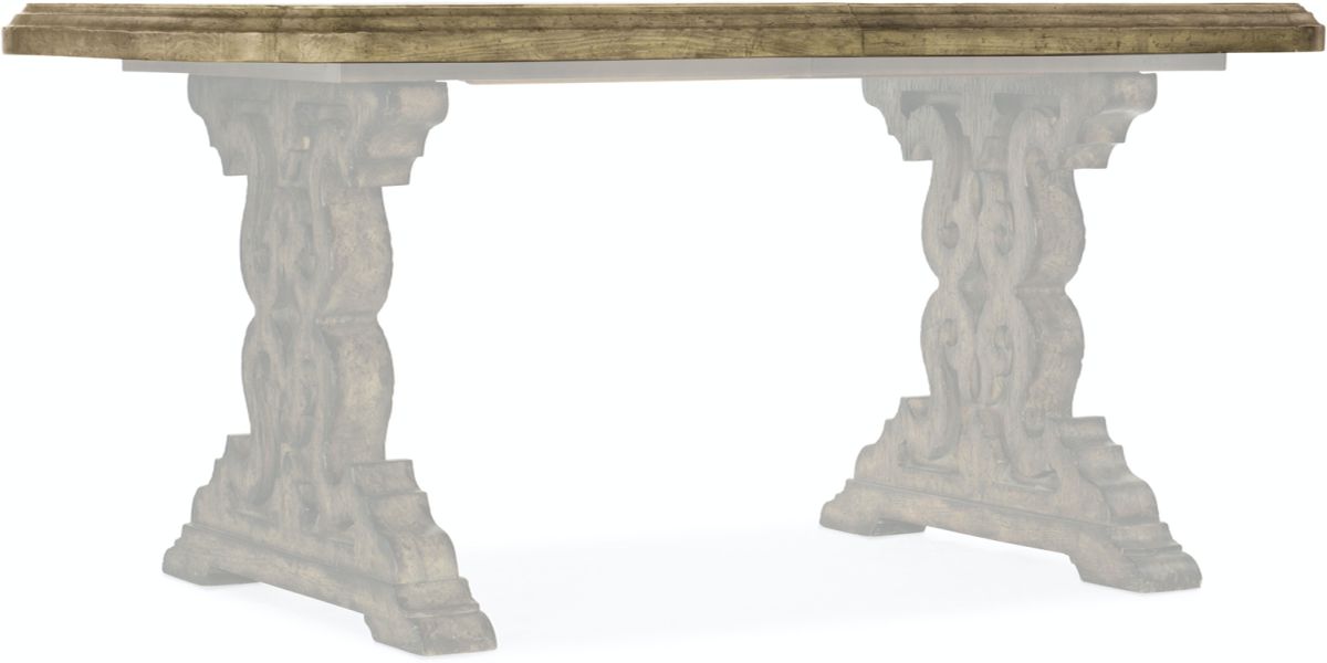 Inspired by the expansive and grand but down-to-earth Hill Country of Texas, the Le Vieux 86-inch table top must be used with the coordinating double pedestal base. This character-filled top is finished in Barnwood, a multi-tone brown with heavy distressing emulating reclaimed wood. Table accommodates two arm chairs and four side chairs without the two 18-inch leaves. With one or two leaves, the table accommodates two arm chairs and up to six side chairs. Taking the next step in creating a Hill Country family of collections, Hooker Furniture has introduced LaGrange.Read More