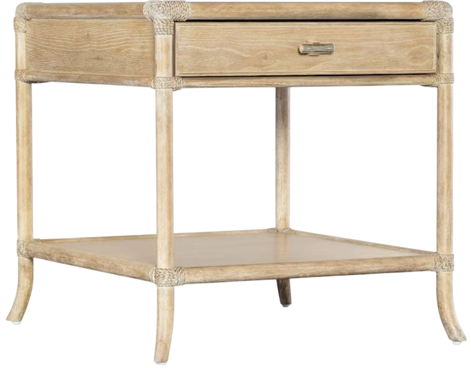Inspired by tropical getaways, the Retreat Pole Rattan End Table is a mixture of natural materials in a laid-back, versatile design. Crafted of oak and maple veneers with rope accents at the joints, the table is finished in the sand-colored dune.Read More