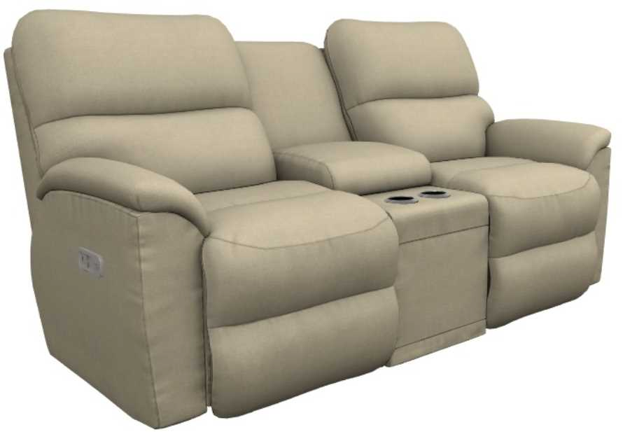 The Brooks Power Reclining loveseat with headrest and console blends cool casual style and utility. Tapered arms accent cushy backs and chaise seats with head-to-toe customizable comfort. The center console keeps drinks, remotes and devices nearby.Read More