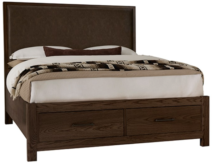 Wood trim upholstered storage bed offers a tailored, contemporary appeal. Features an upholstered headboard with oak wood trim covered in sedona brown performance fabric. It is easily cleanable, stain-resistant, and durable enough to withstand the wear and tear of everyday life.Read More