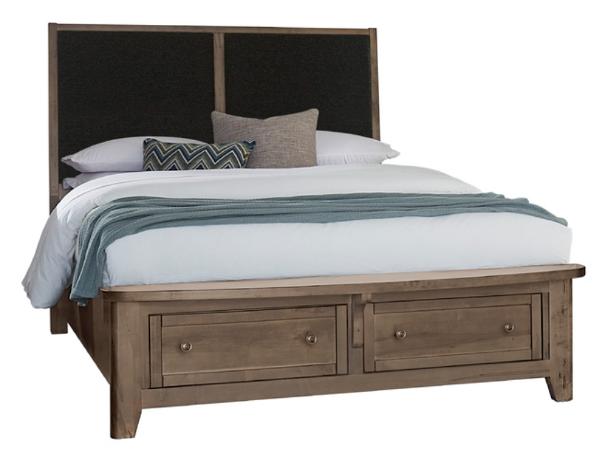 Vaughan-Bassett Woodbridge Black/Dark Cashmere Queen Upholstered Panel Storage Bed